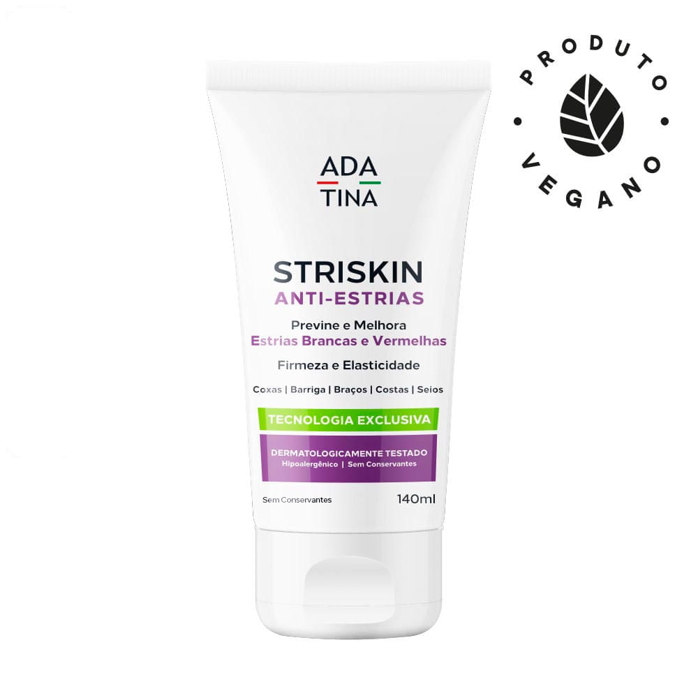STRISKIN é um creme antiestrias riquíssimo em ácido linoleico e alfa-linolênico com Tecnologia Pró-Colagênica, que aumenta de forma significativa o colágeno e a elastina da pele, aumentando a produção dos fatores de crescimento endógenos produzidos pela própria pele, diminuindo as estrias já existentes, além de prevenir, melhorar e reduzir as estrias brancas e vermelhas das regiões mais críticas do corpo, como seios, braço, barriga, coxas, nádegas e costas, deixando a pele muito firme, lisa, hidratada e com muito menos estrias brancas e vermelhas.