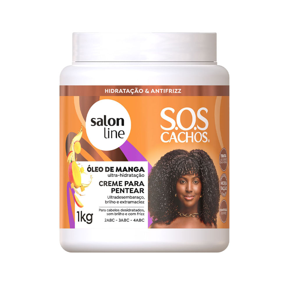 O Creme De Pentear Salon Line SOS Cachos Óleo De Manga 1Kg é indicado para cabelos desidratados, sem brilho e com frizz, das curvaturas 2ABC, 3ABC e 4ABC. Ele proporciona hidratação intensa e combate eficazmente o frizz, deixando os cabelos mais controlados e suaves.