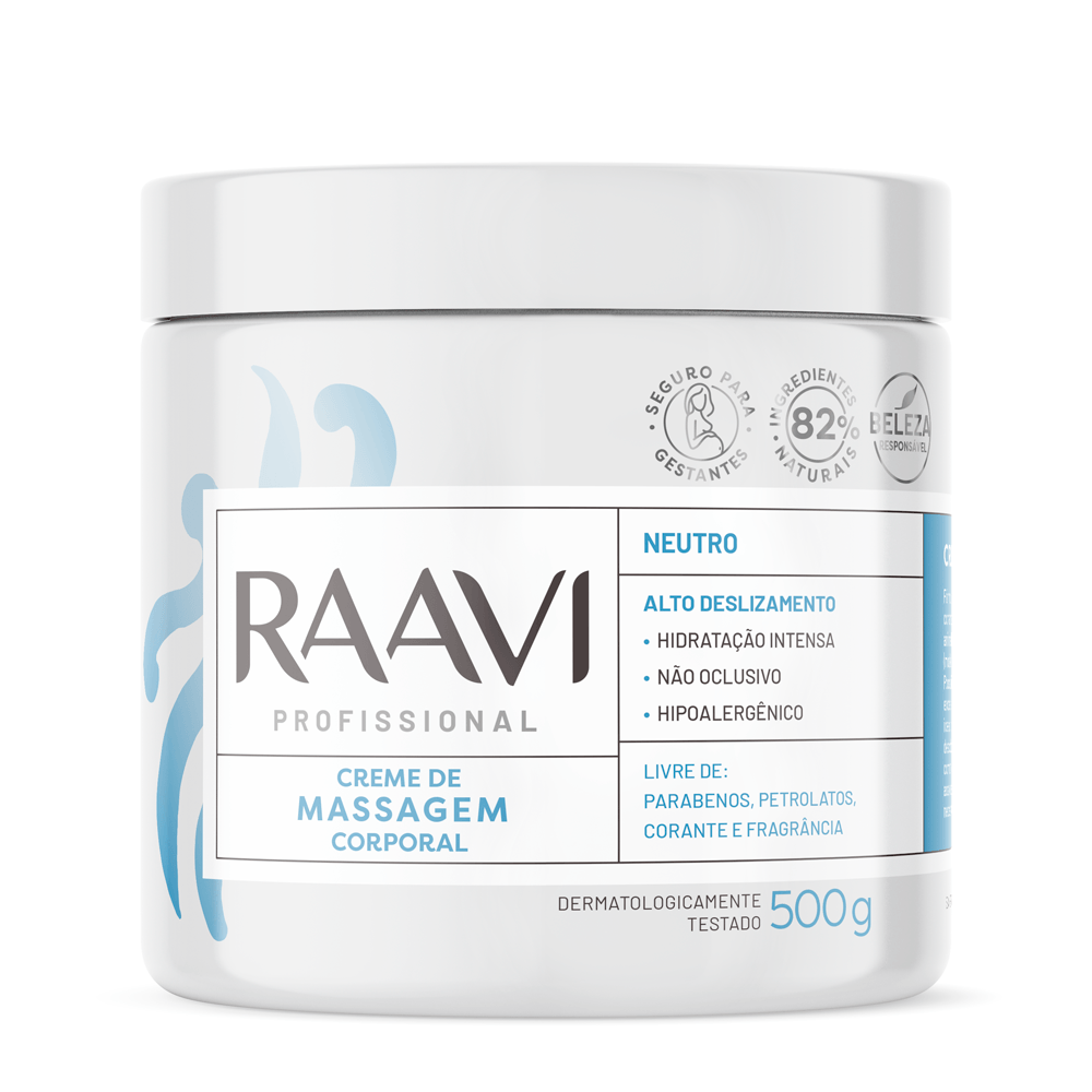 O Creme Para Massagem Corporal Raavi Neutro é indicado para os mais diversos tipos de massagem corporal.