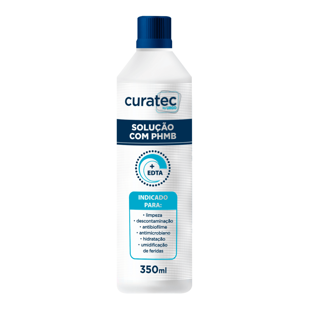 CURATEC SOLUÇÃO COM PHMB + EDTA é uma solução aquosa, incolor e límpida, destinada à limpeza e descontaminação de todos os tipos de feridas, inclusive lesões de difícil acesso como cavidades e fissuras. Além disso, promove hidratação adequada ao leito da ferida.