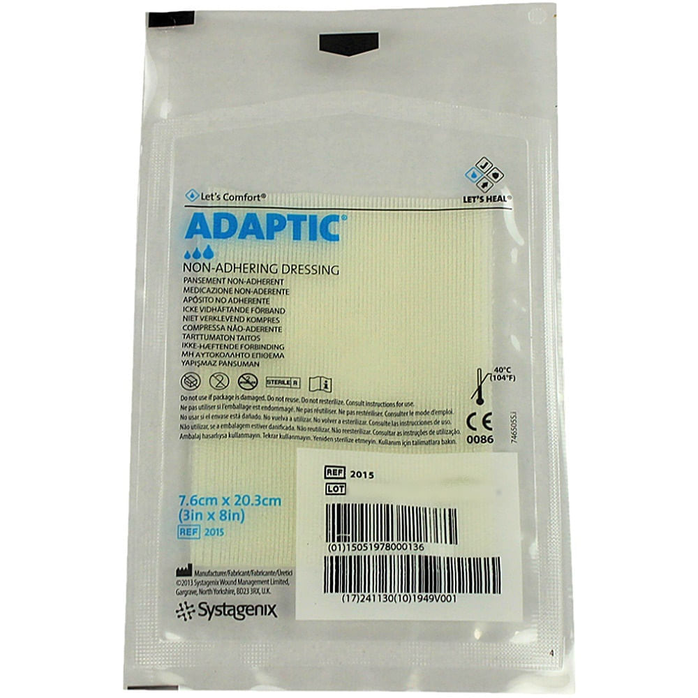 Indicações:As coberturas ADAPTIC® são indicadas para feridas com nível de exsudato variando de leve a alto, onde se queira evitar a aderência, incluindo: queimaduras de 1º e 2º graus, abrasões, enxertos, úlceras de perna, úlceras por pressão, extração de unhas, eczemas, incisões cirúrgicas, lacerações, procedimentos de reconstrução e linhas de sutura