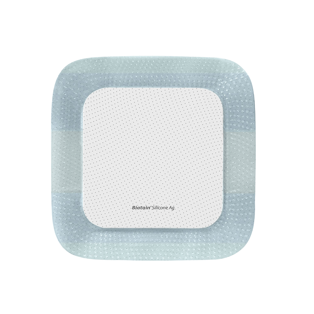 Biatain Silicone Ag é um curativo de espuma antibacteriano , absorvente , macio e flexível com um adesivo de silicone suave .