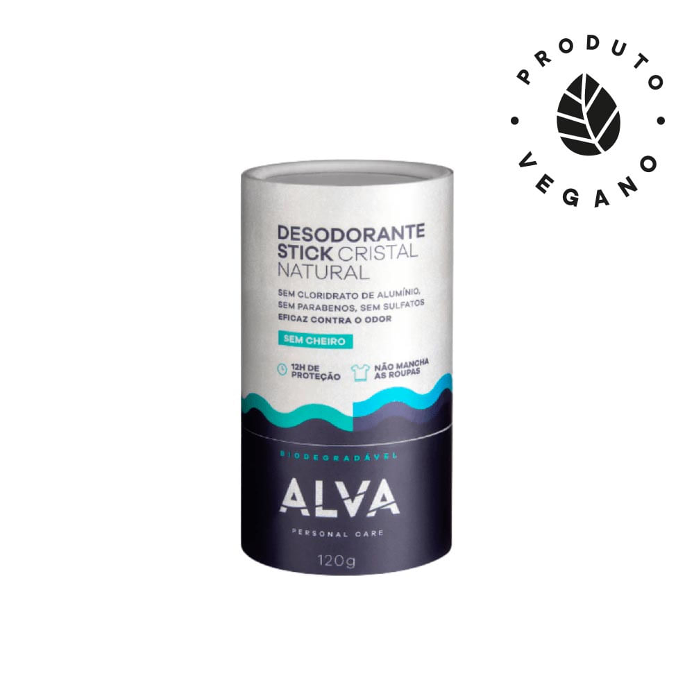 O Desodorante Stick Kristall Sensitive com Embalagem Biodegradável 120g da Alva é formulado com cristal de alúmen de potássio, um poderoso mineral natural antibacteriano que impede a proliferação de bactérias causadoras de maus odores. Com moléculas grandes que não são absorvidas pela pele, ele reduz levemente a transpiração sem entupir os poros.