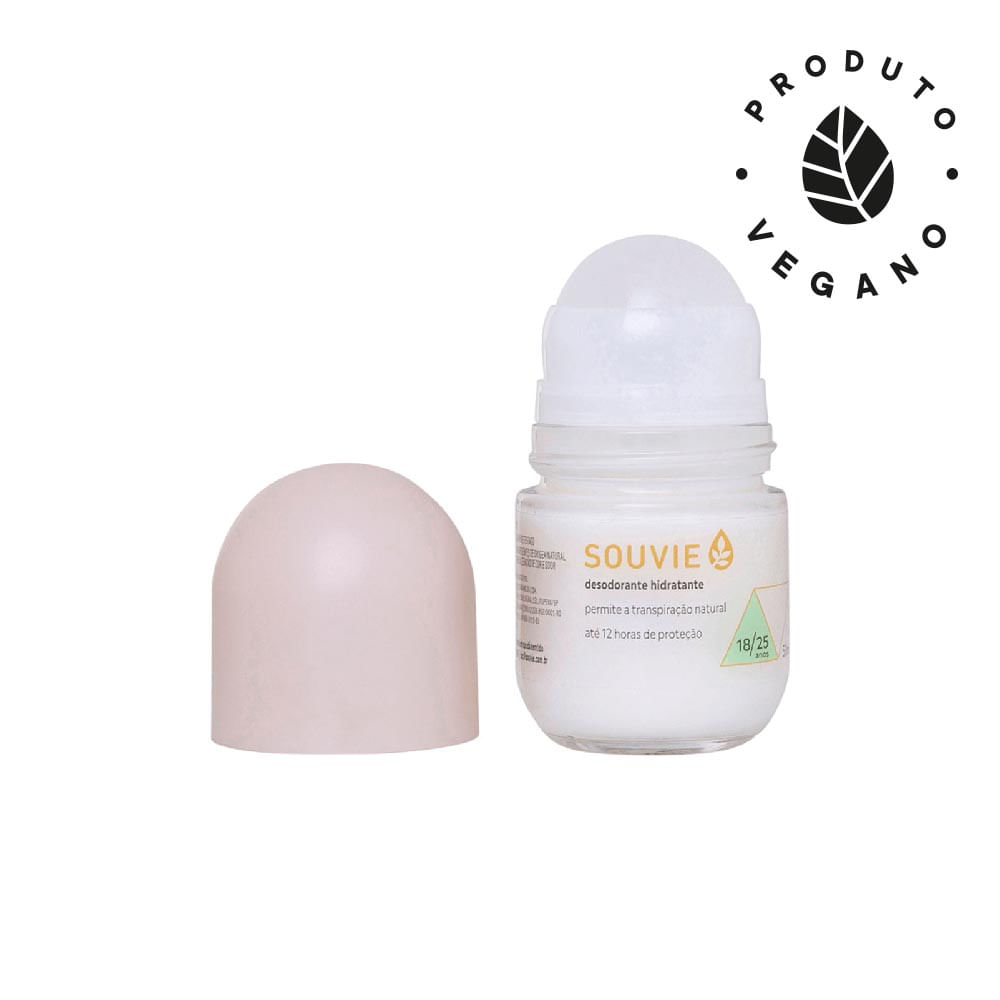 O Desodorante Hidratante Roll-on 18/25 da Souvie é indicado para todos os tipos de pele, especialmente dos 18 aos 25 anos.