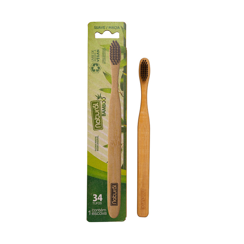 A Escova Dental Natural de Bambu 34 tufos da Orgânico Natural de Cerdas Macia Suave, ela é vegana e cruelty-free. Contém 34 tufos de cerdas macias banhadas com carvão vegetal, um poderoso ativo que não permite a proliferação de fungos e bactérias, além do cabo de bambu natural biodegradável, 100% ecológico e que não agride o meio ambiente.