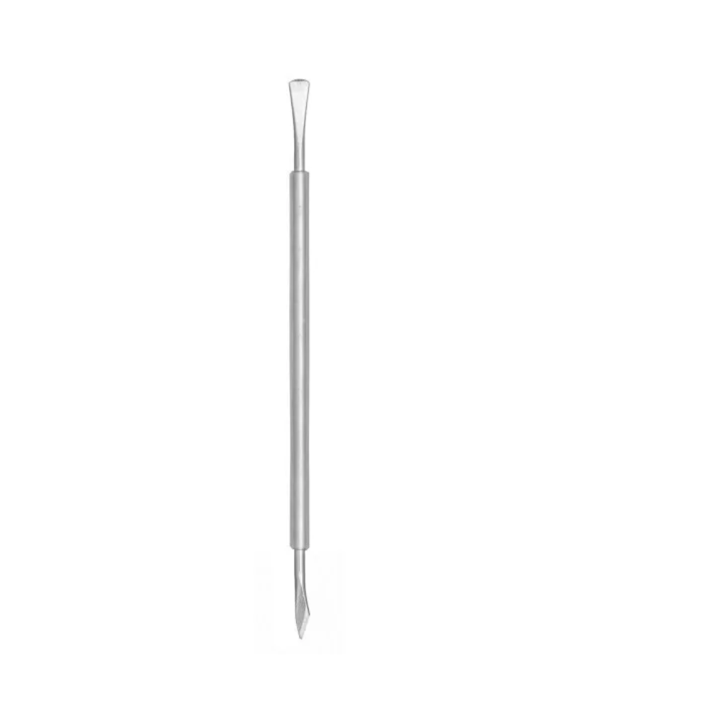 A Espátula Enox Inox Com Silicone é uma ferramenta projetada para auxiliar na manicure e pedicure, sendo especialmente útil para empurrar e raspar as cutículas em excesso. Ela possui um cabo de silicone que proporciona maior conforto durante o manuseio e pode ser esterilizada em autoclave.