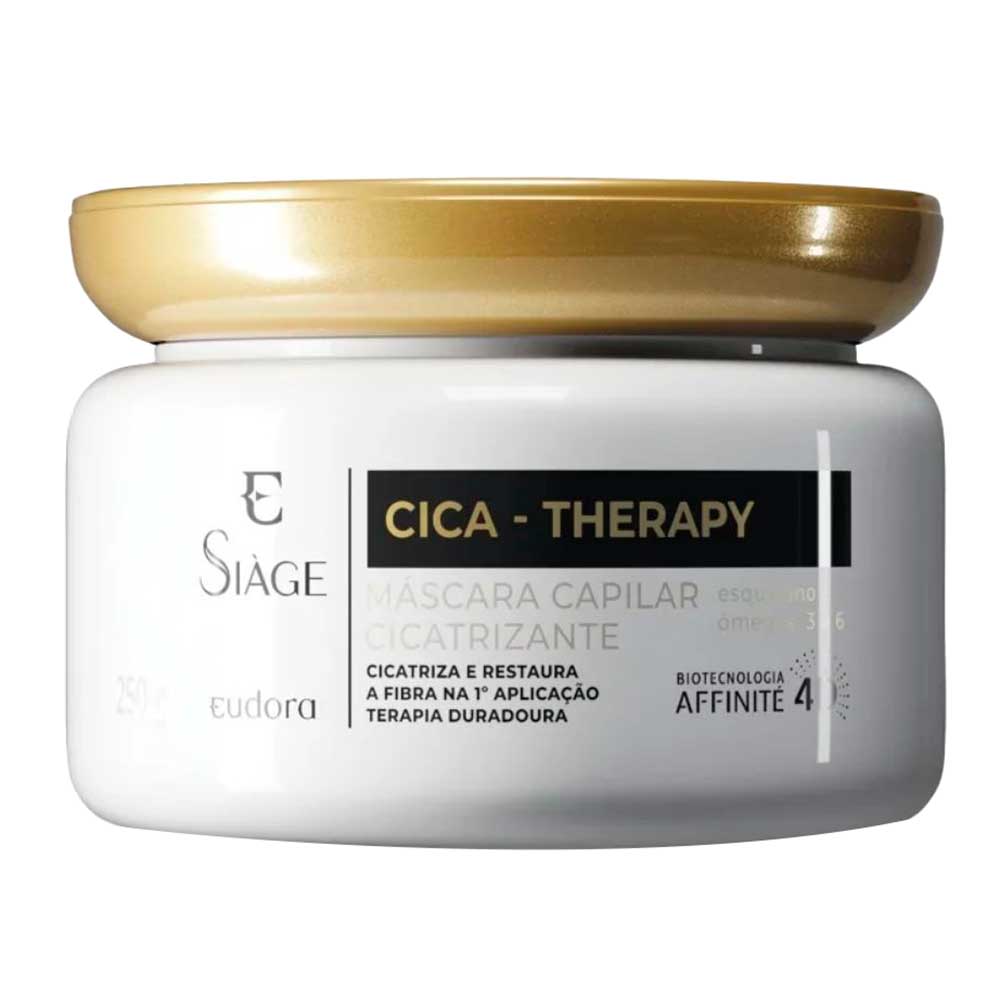 Eudora Siage Cica-Therapy MáscaraO que é e para que serve?A Máscara Capilar Siàge Cica-Therapy é um tratamento inovador e duradouro que promove a cicatrização das áreas danificadas dos fios, restaurando a saúde e vitalidade do seu cabelo.