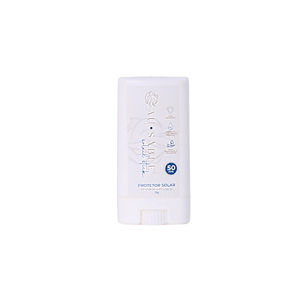 - Filtro solar em formato stick com FPS 50 e FPUVA 19,5