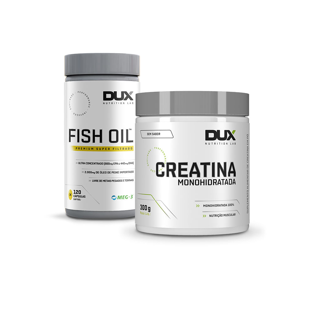 O combo Fish Oil e Creatina Monohidratada 300g da DUX Nutrition é uma combinação perfeita para quem busca suporte completo em desempenho físico, construção muscular, e saúde geral. Com ômega-3 ultra-puro e creatina de alta qualidade, este kit oferece o que há de melhor em suplementação para otimizar resultados.