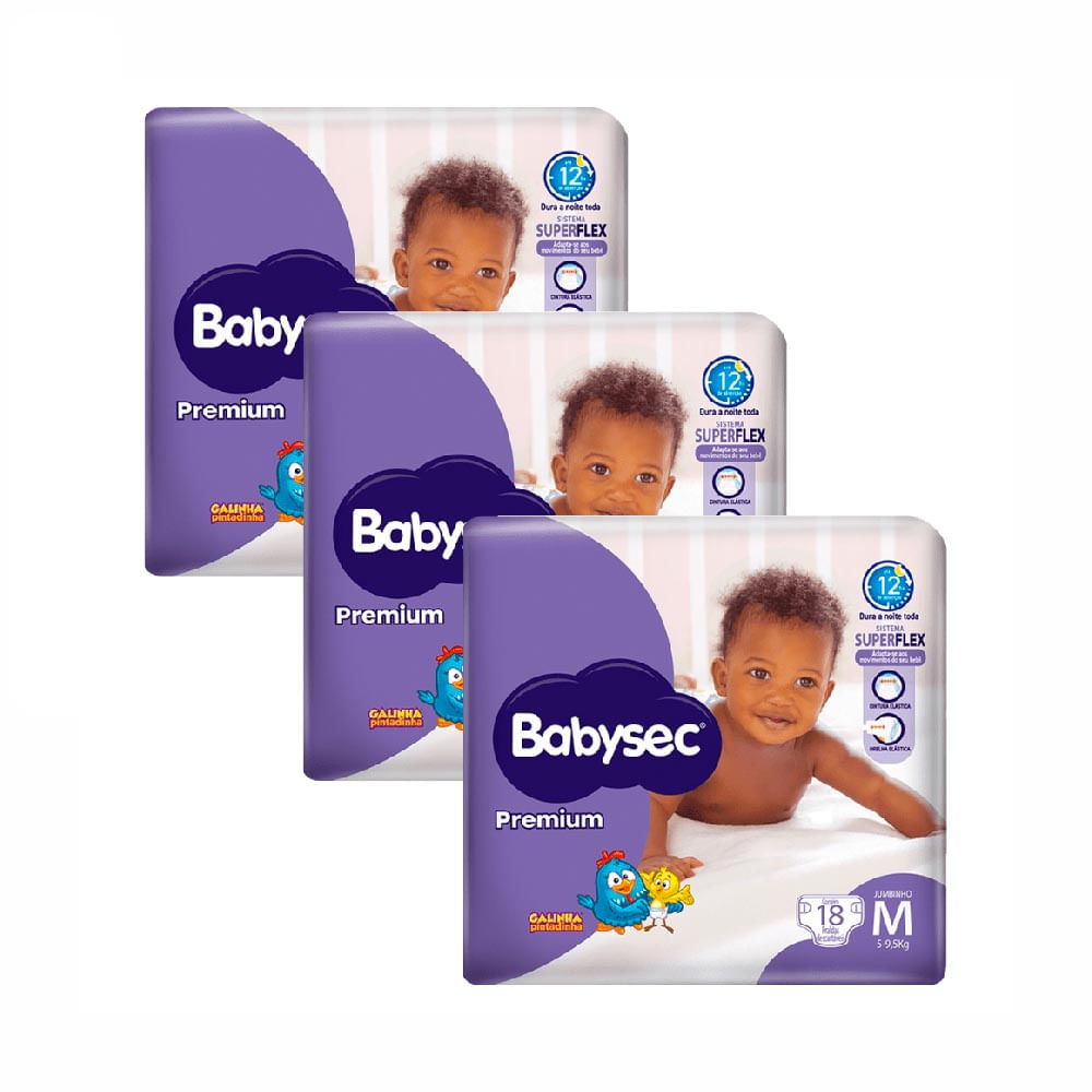 Kit com 3 pacotes Babysec Premium M com 18 unidades cada