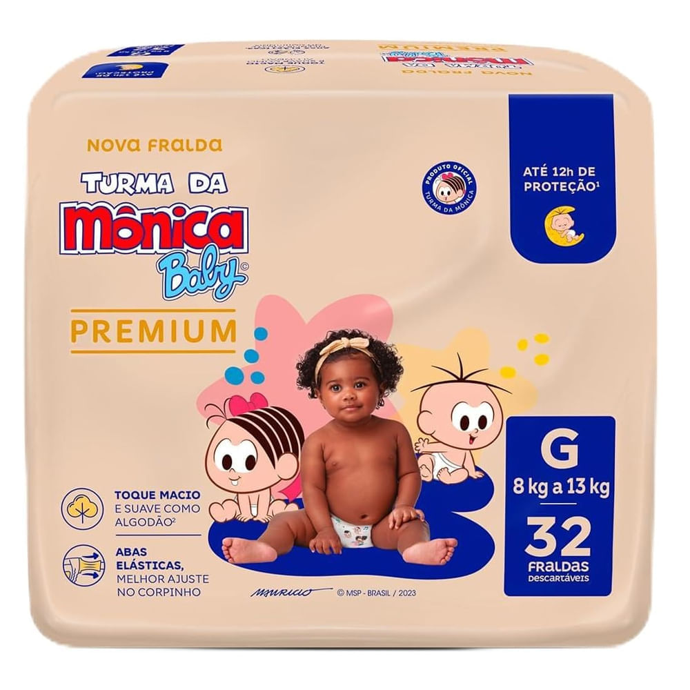 Fralda Descartável Turma Da Mônica Baby Premium G - 32 Unidades