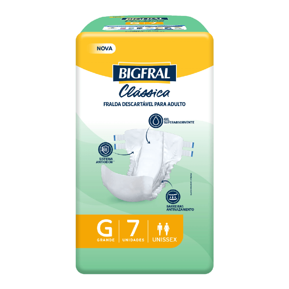 Fralda Geriátrica Clássica Bigfral Novo Modelo Tamanho G 7 Unidades