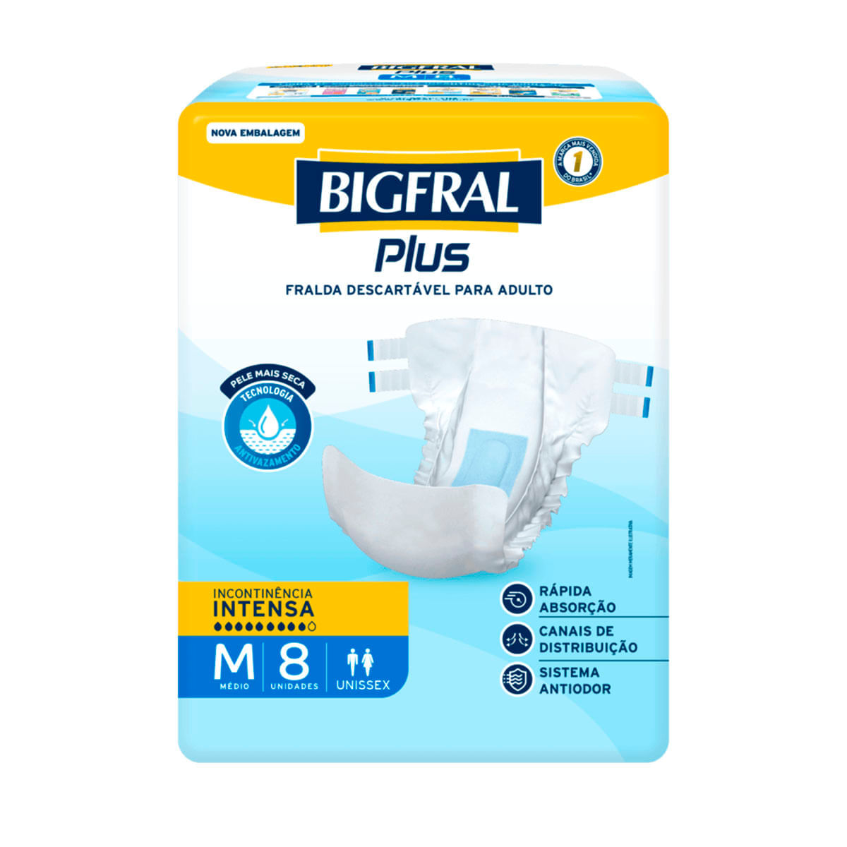 Fralda Geriátrica Plus Bigfral - Tamanho M - 8 Unidades