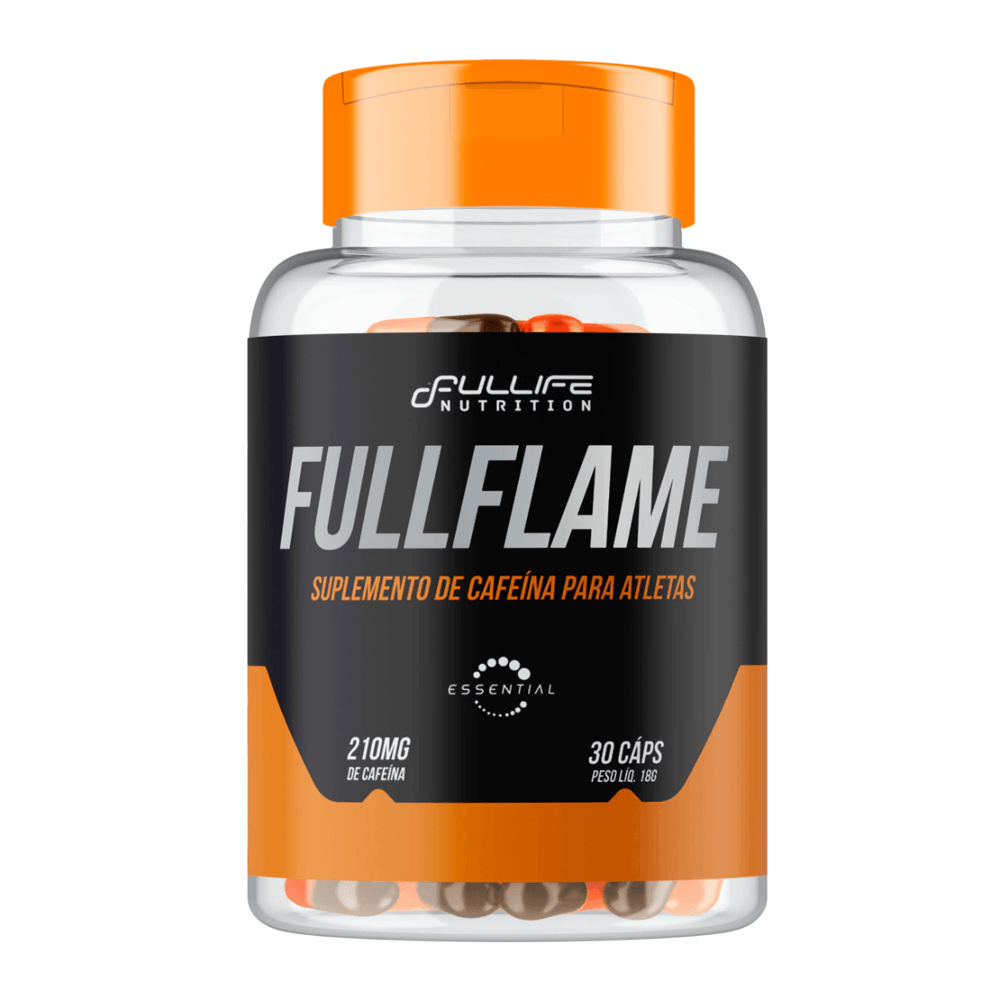 O Suplemento Fullflame 210mg é formulado com cafeína anidra, um composto natural com potente efeito termogênico. Atua estimulando a queima de gordura corporal para geração de energia, auxiliando no emagrecimento, além de melhorar o desempenho físico e mental.