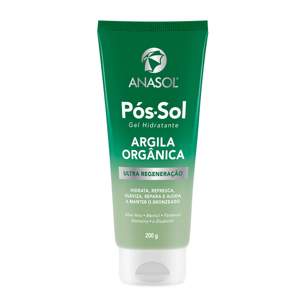 A pele necessita de cuidados diários para manter-se saudável, especialmente após a exposição solar. Anasol Gel Pós-Sol Argila é indicado para aliviar a pele sensibilizada e avermelhada pelo excesso de sol. Sua fórmula contém argila orgânica rica em minerais que auxiliam na manutenção da integridade da pele, associada à Aloe Vera, a-Bisabolol, Alantoína, Pantenol (Vitamina B5) e mentol que conferem excelentes propriedades calmantes, de regeneração celular, refrescância e hidratação. Ajuda a manter o bronzeado por mais tempo. Benefícios:? Indicado para aliviar a pele sensibilizada e avermelhada pelo excesso de sol.? Contém argila orgânica rica em minerais que auxiliam na manutenção da integridade da pele.? Ajuda a manter o bronzeado.? Agradável sensação de refrescância.? Restaura o equilíbrio da pele.? Ultra regenerador.? Dermatologicamente testado, hipoalergênico, formulado de maneira a minimizar possível surgimento de alergia.Ativos:Argila, Pantenol, Alantoína, Aloe Vera, Mentol, a-Bisabolol.Modo de Usar: Após o banho, aplique o produto em todo o corpo massageando suavemente. Produto imprescindível após a exposição solar.