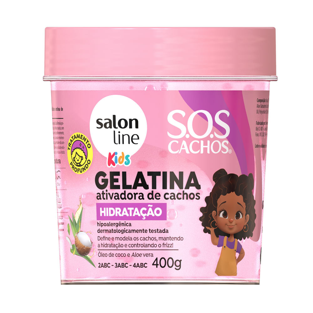 A Gelatina Salon Line SOS Cachos Kids Hidratação 400g oferece hidratação, definição e modelagem para os cabelos das crianças.