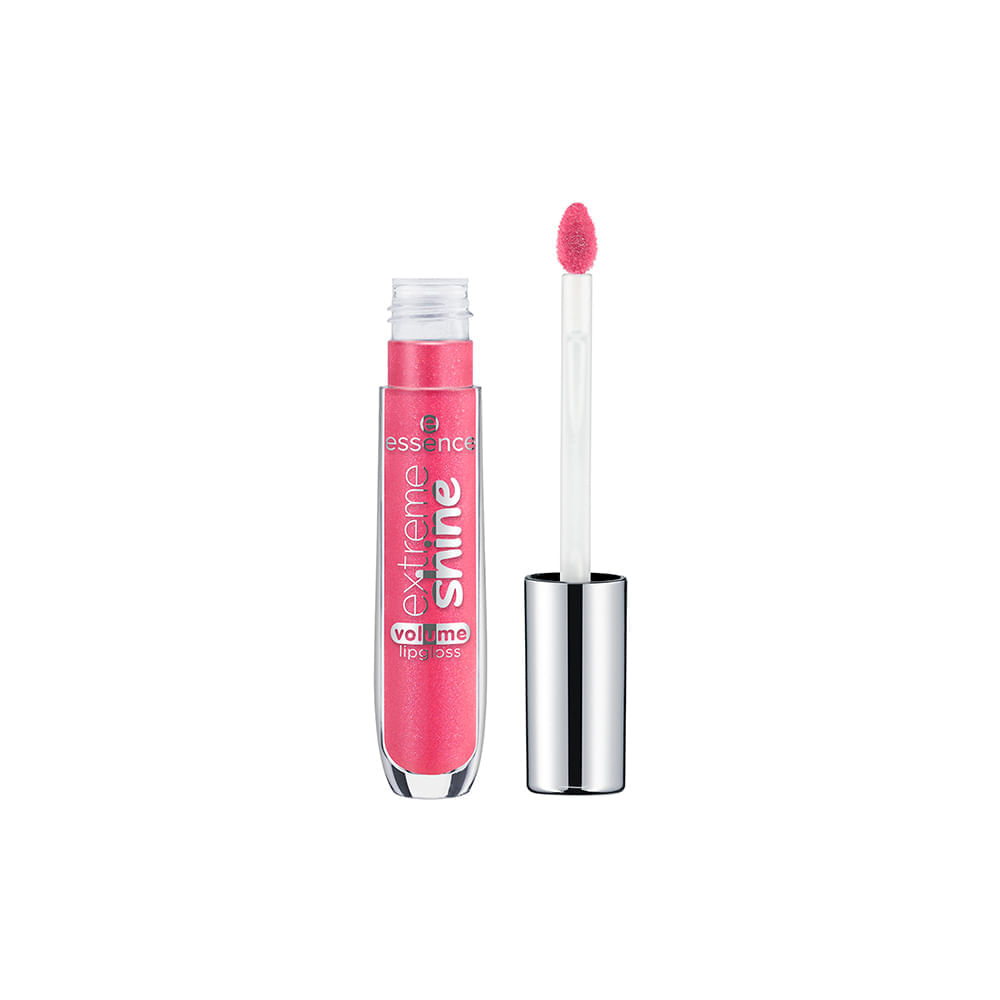 O produto é um gloss labial líquido cintilante da marca Essence Extreme Shine, formulado para proporcionar brilho radiante aos lábios.