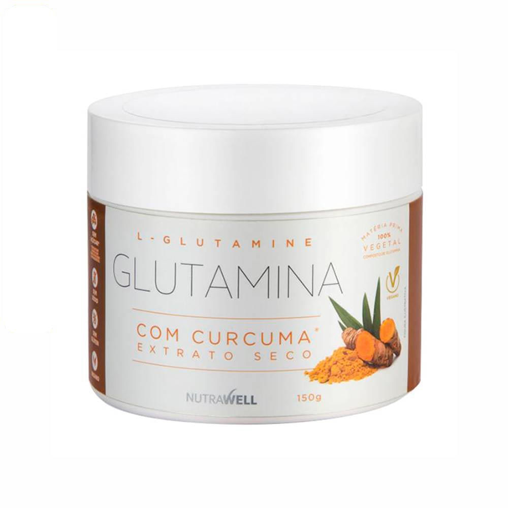 A Glutamina com cúrcuma Nutrawell 150g, fornece 4,7 g de glutamina e 25 mg do extrato seco de cúrcuma na porção.