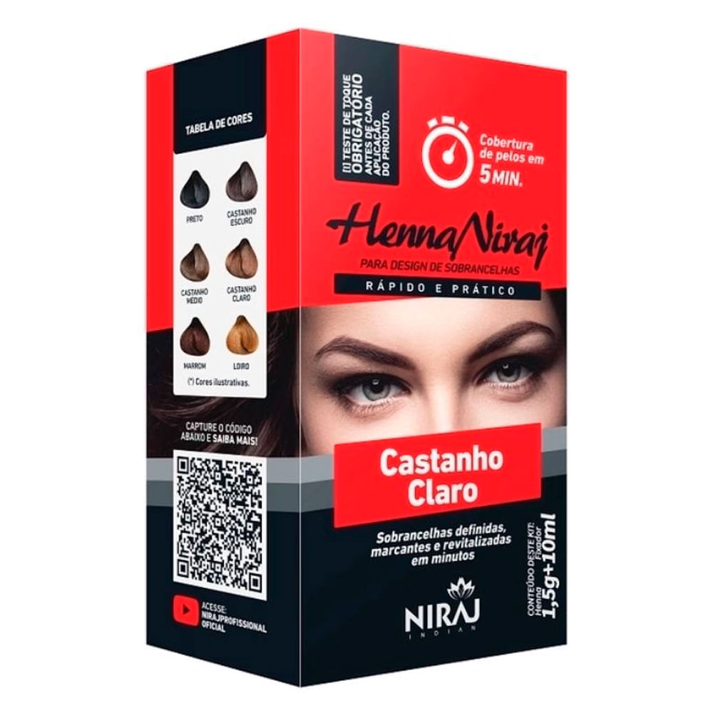 A Henna Niraj Para Sobrancelha 5 Minutos foi desenvolvida especialmente para pessoas que desejam corrigir o formato de suas sobrancelhas (seja por serem ralas, finas, curtas, com falhas ou diferente um da outra).