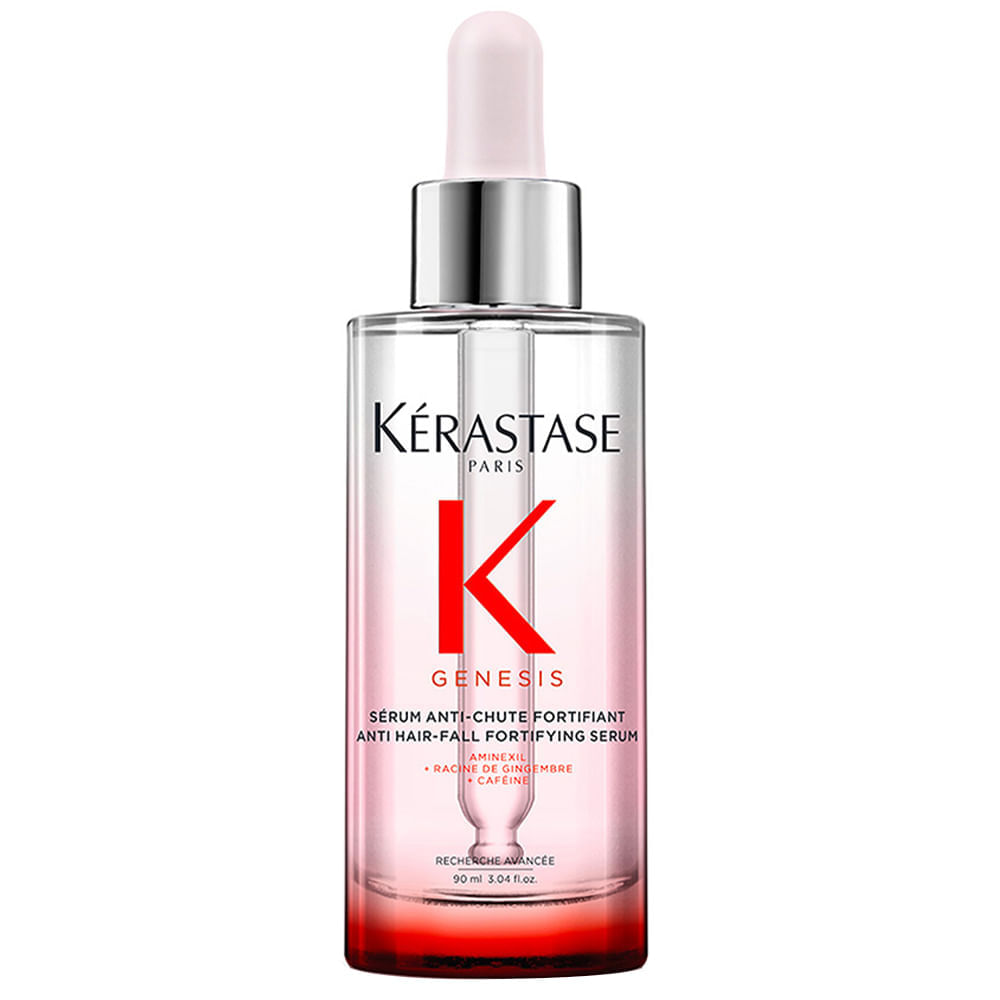 Sérum Genesis Anti-Chute Fortifiant:_x000D_ _x000D_ Ingredientes:_x000D_ Combinação de Aminexil, Células Nativas de Eldelweiss e Raiz de Gengibre