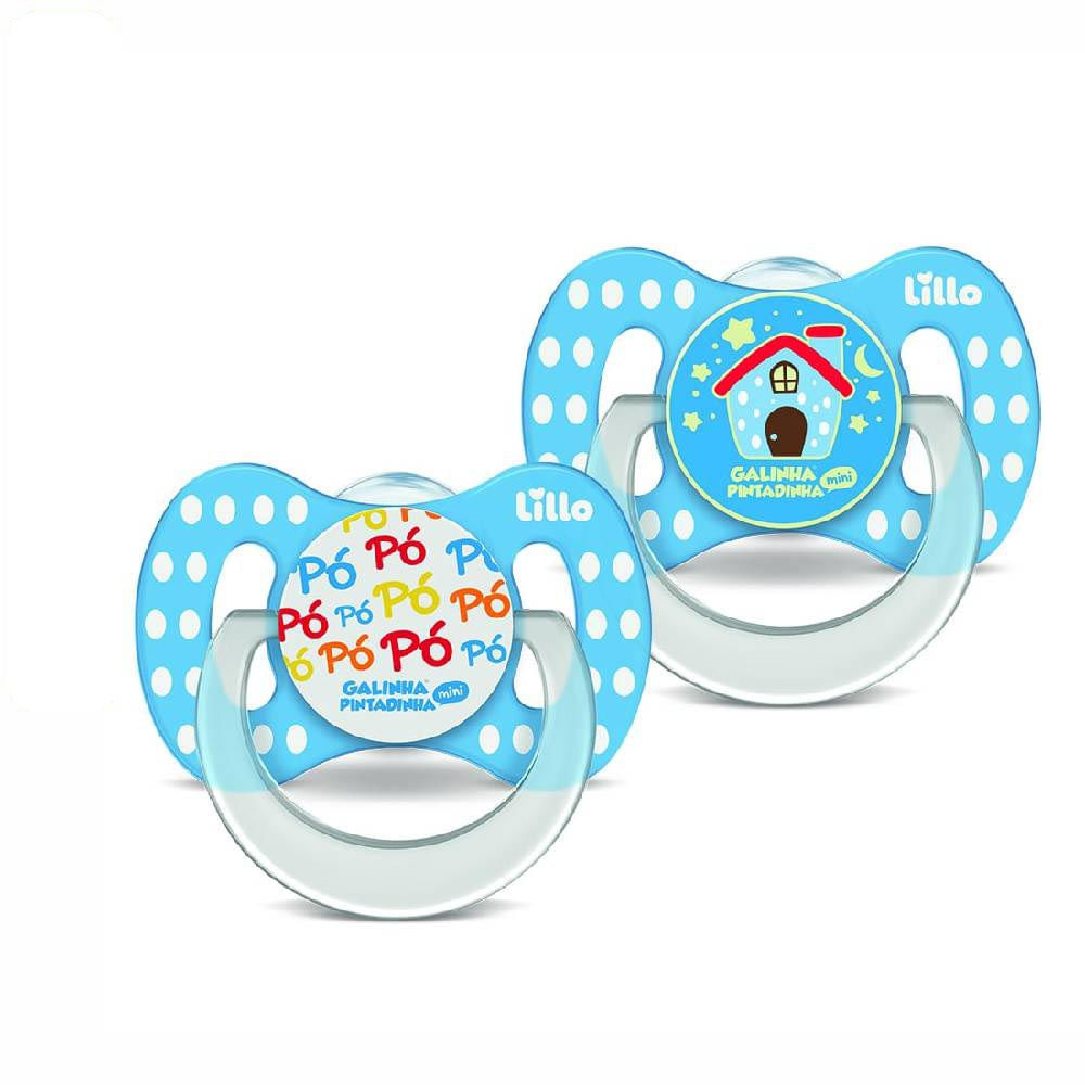O Kit com 2 Chupetas Funny Dia e Noite da Galinha Pintadinha Lillo é indicado para bebês maiores de 6 meses que utilizam chupeta como forma de conforto e entretenimento. Seu design exclusivo da Galinha Pintadinha e características anatômicas do escudo e bico proporcionam conforto e segurança para o bebê.