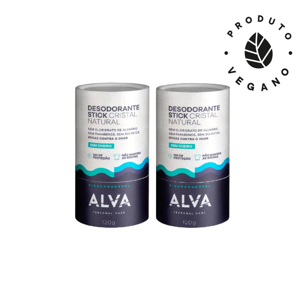 2 unidades do Desodorante de Pedra Stick Embalagem Biodegradável Alva 120g