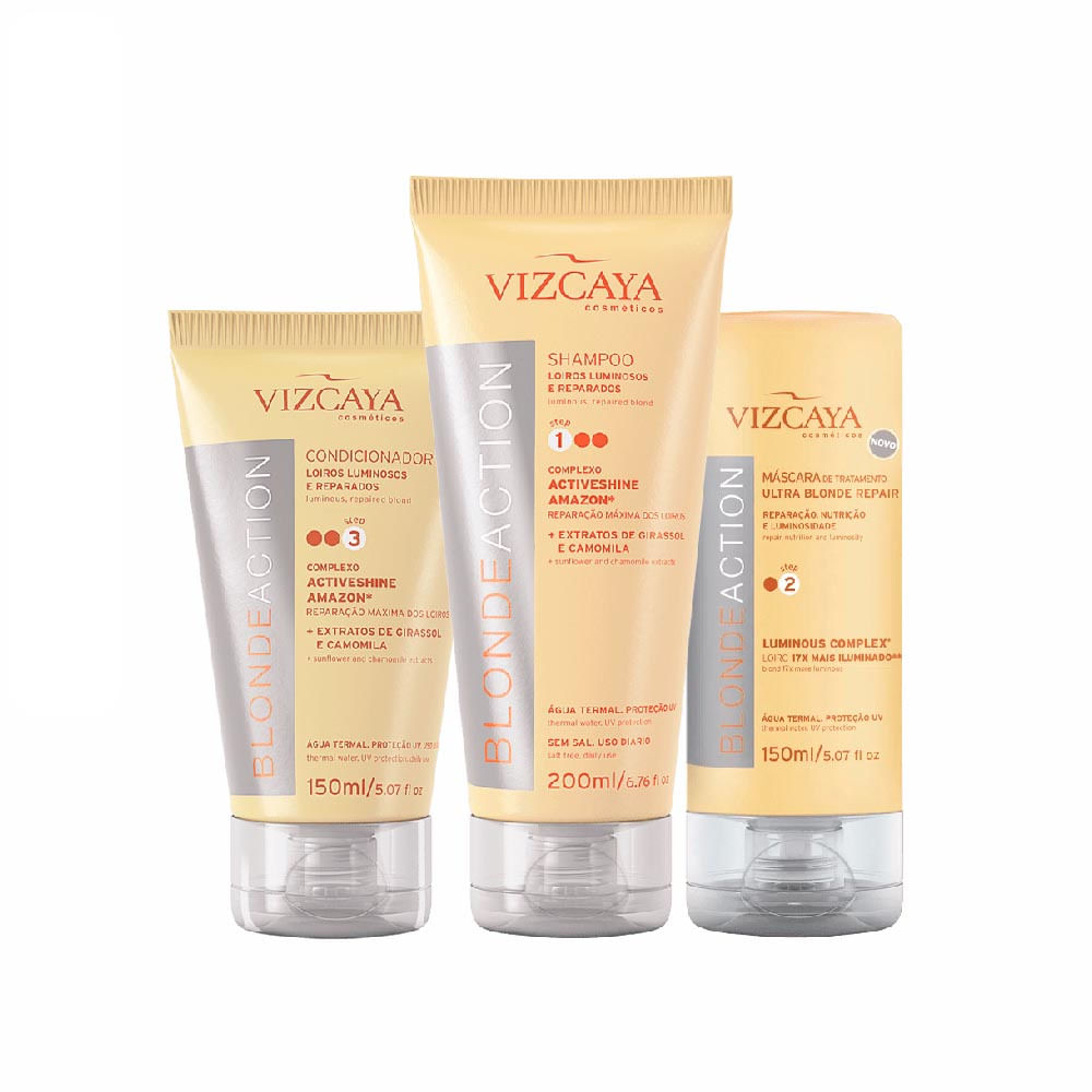 Para loiros mais reluzentes e fios extremamente nutridos e fortalecidos, a Vizcaya Cosméticos desenvolveu a linha Blonde Action, com a mais alta e exclusiva tecnologia combinando óleo de babaçu, manteiga de murmuru, extratos de girassol e camomila e creatina. Esta linha de produtos é projetada para cabelos saudáveis hoje e loiros brilhosos por muito mais tempo.