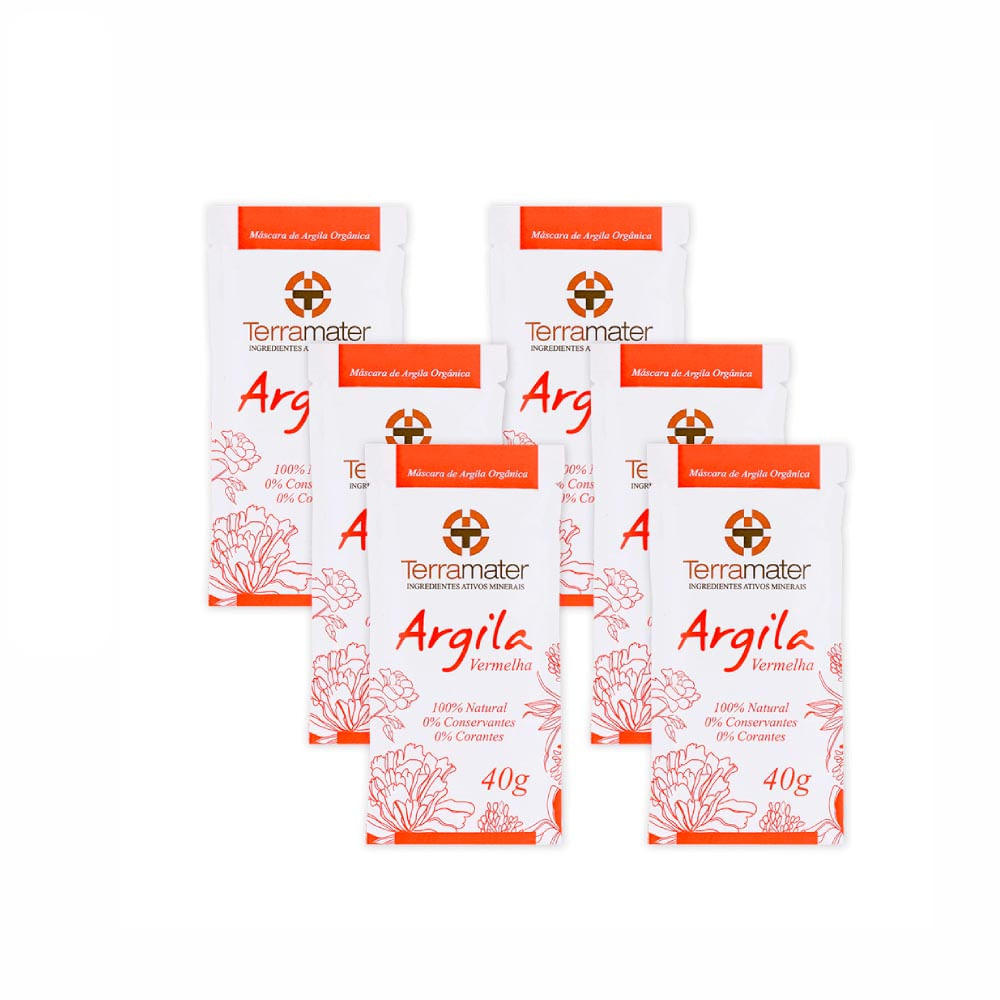 Kit 6 Máscaras Facial Terramater Argila Vermelha 40g
