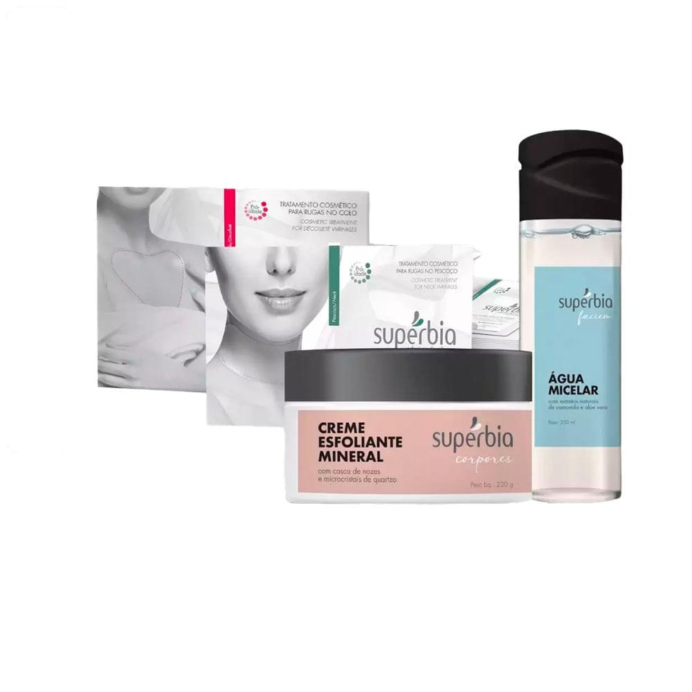 Kit Adesivos Para Rugas No Pescoço E Colo, Creme Esfoliante E Água Micelar Supérbia