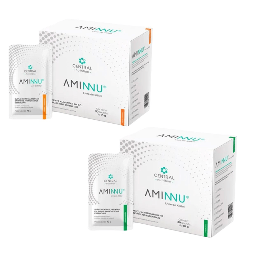 O Kit Aminnu Sem Xilitol combina dois sabores refrescantes: Tangerina e Limão, com 30 sachês cada. Este suplemento alimentar disponibiliza os 8 aminoácidos essenciais em sua forma livre, permitindo máxima absorção e aproveitamento pelo organismo.