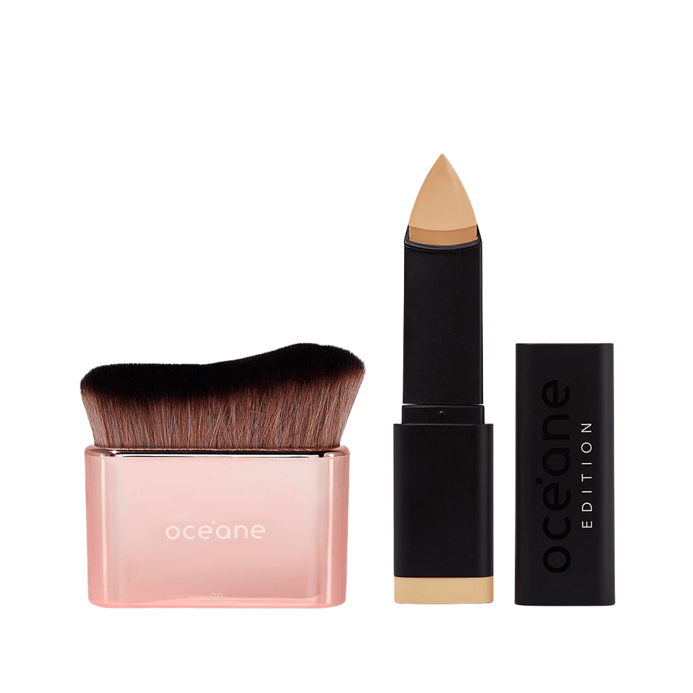 O Kit Base em Bastão Sand + Pincel de Maquiagem Multifuncional reúne 2 produtos perfeitos para fazer uma pele com aparência natural, disfarçar imperfeições sem marcar as linhas finas e deixar a pele bem uniforme.