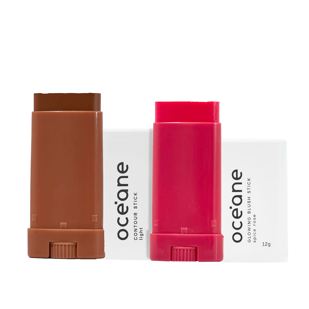 Uma maquiagem perfeita e cheia de pigmentação? Sim! O Kit Blush em Bastão Rosa + Contorno em Bastão Claro Océane Limited reúne 2 produtos da linha Océane Limited para você ter no nécessaire e criar produções descomplicadas e divertidas.