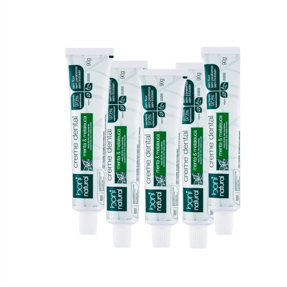 Kit 5 Pasta Dental Natural Menta e Melaleuca Sem Flúor 90g – Boni Natural