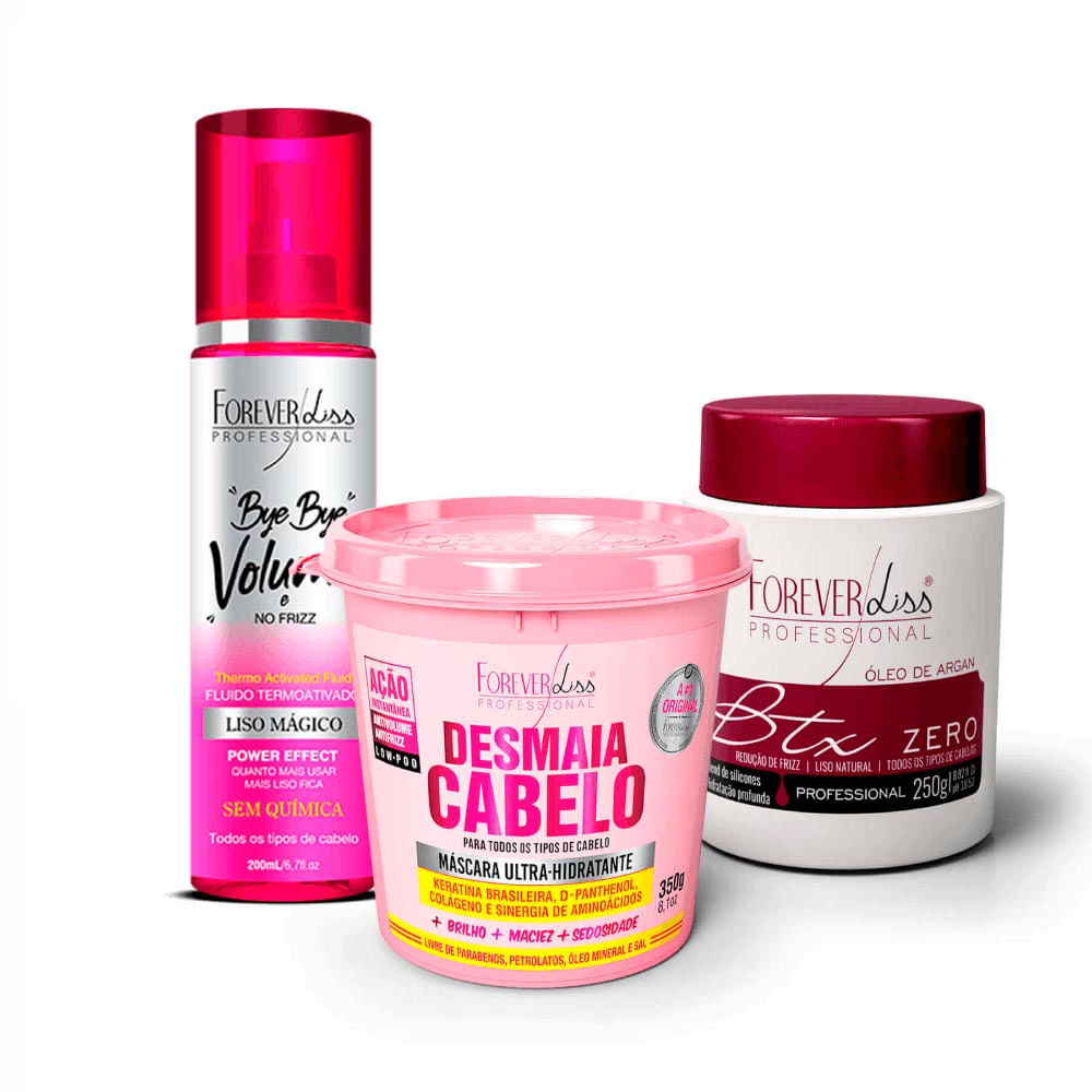 O Kit Cabelos Lisos e Saudáveis Forever Liss conta com três produtos que vão te ajudar a conquistar os cabelos dos sonhos, livres do excesso de volume, do frizz, e com um brilho incrível!