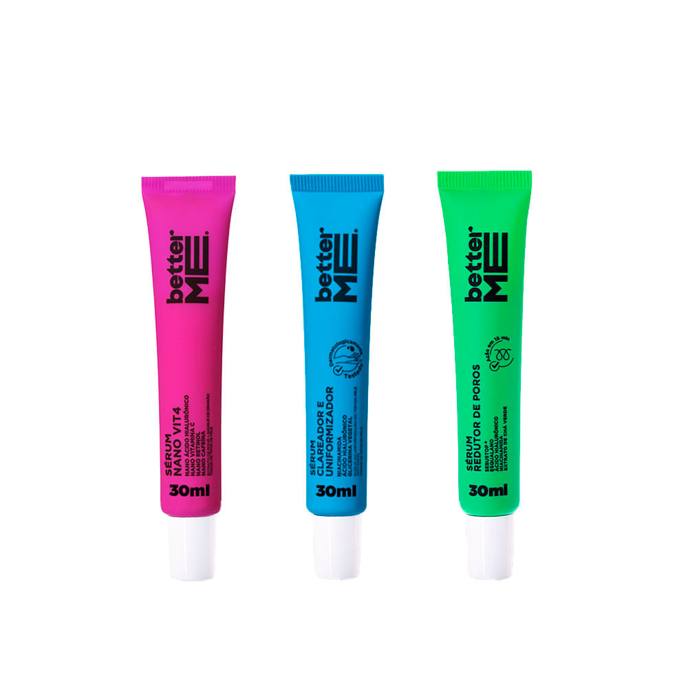 - Kit de cuidados faciais com séruns para clarear e uniformizar a pele