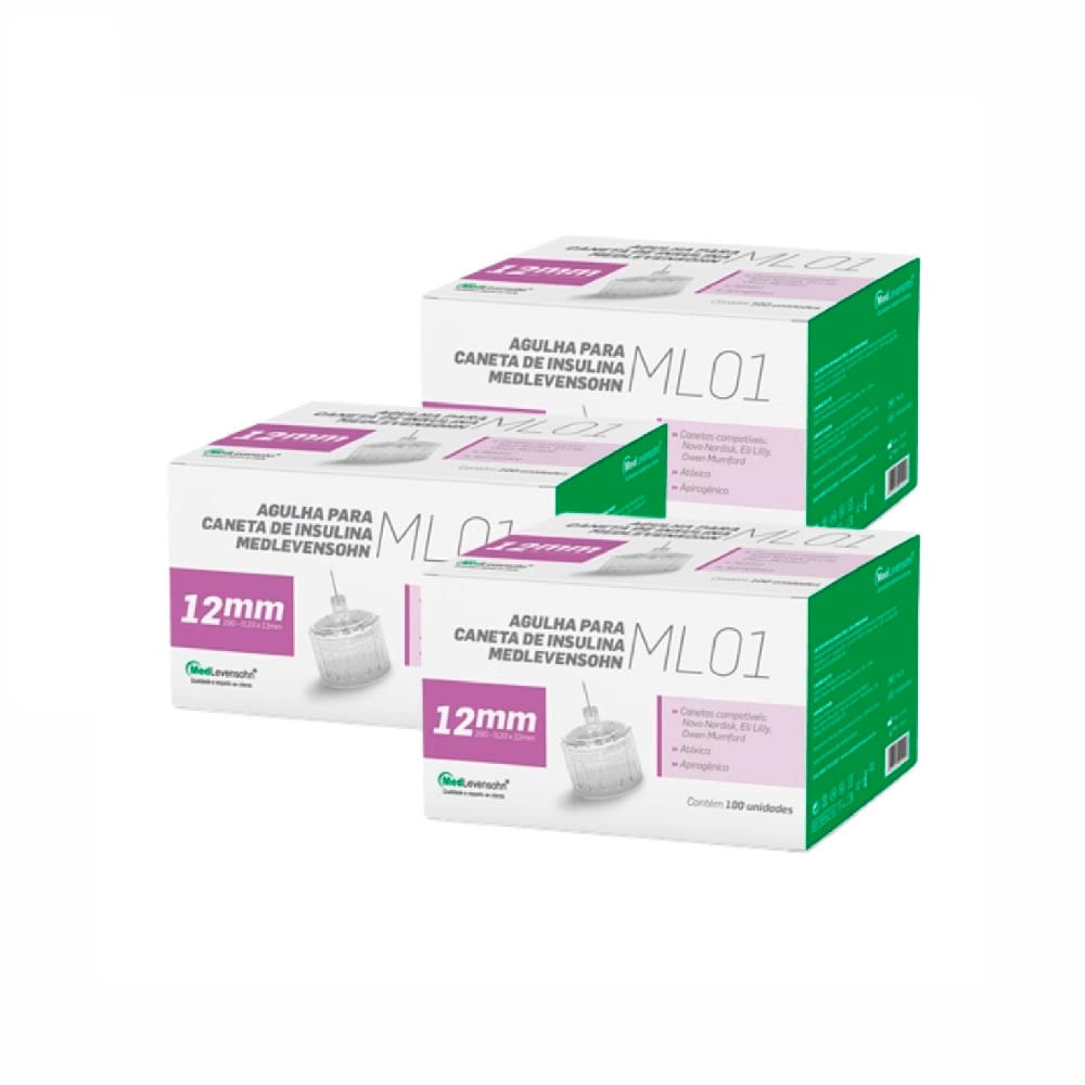 Kit Com 3 Caixas De Agulha Caneta Insulina 12mm Medlevensohn