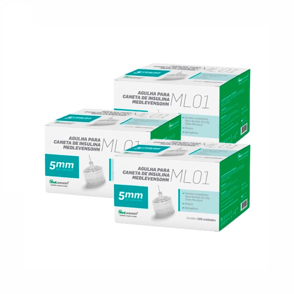 Kit Com 3 Caixas De Agulha Caneta Insulina 5mm Medlevensohn