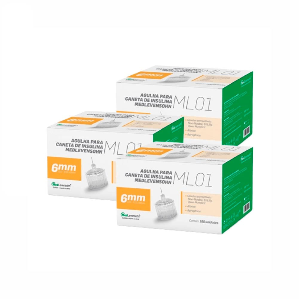 Kit Com 3 Caixas De Agulha Caneta Insulina 6mm Medlevensohn