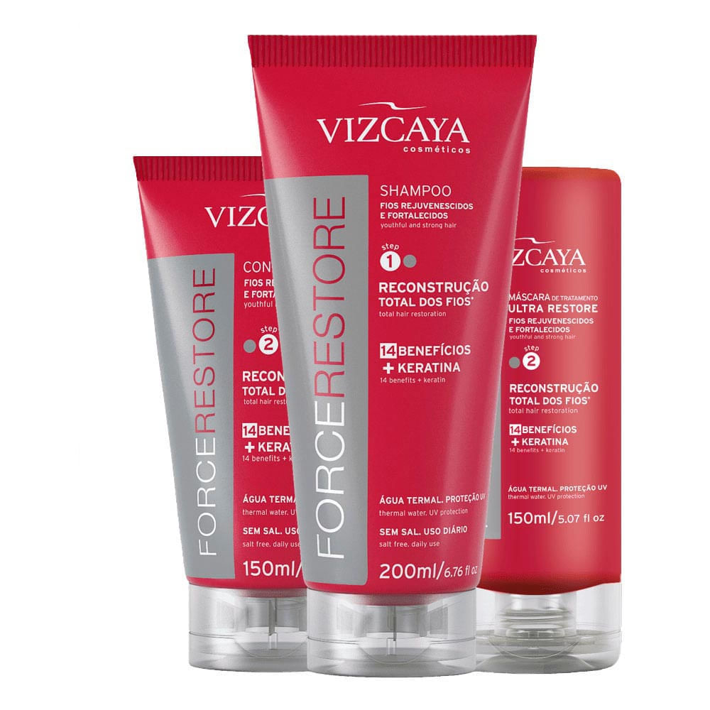 Kit Completo Vizcaya Force Restore Shampoo + Condicionador + Máscara