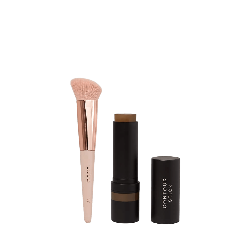 O Kit Contorno em Bastão Marrom Claro + Pincel de Maquiagem para Contorno Conta com 2 Produtos, Perfeitos para Criar o Contorno Ideial.