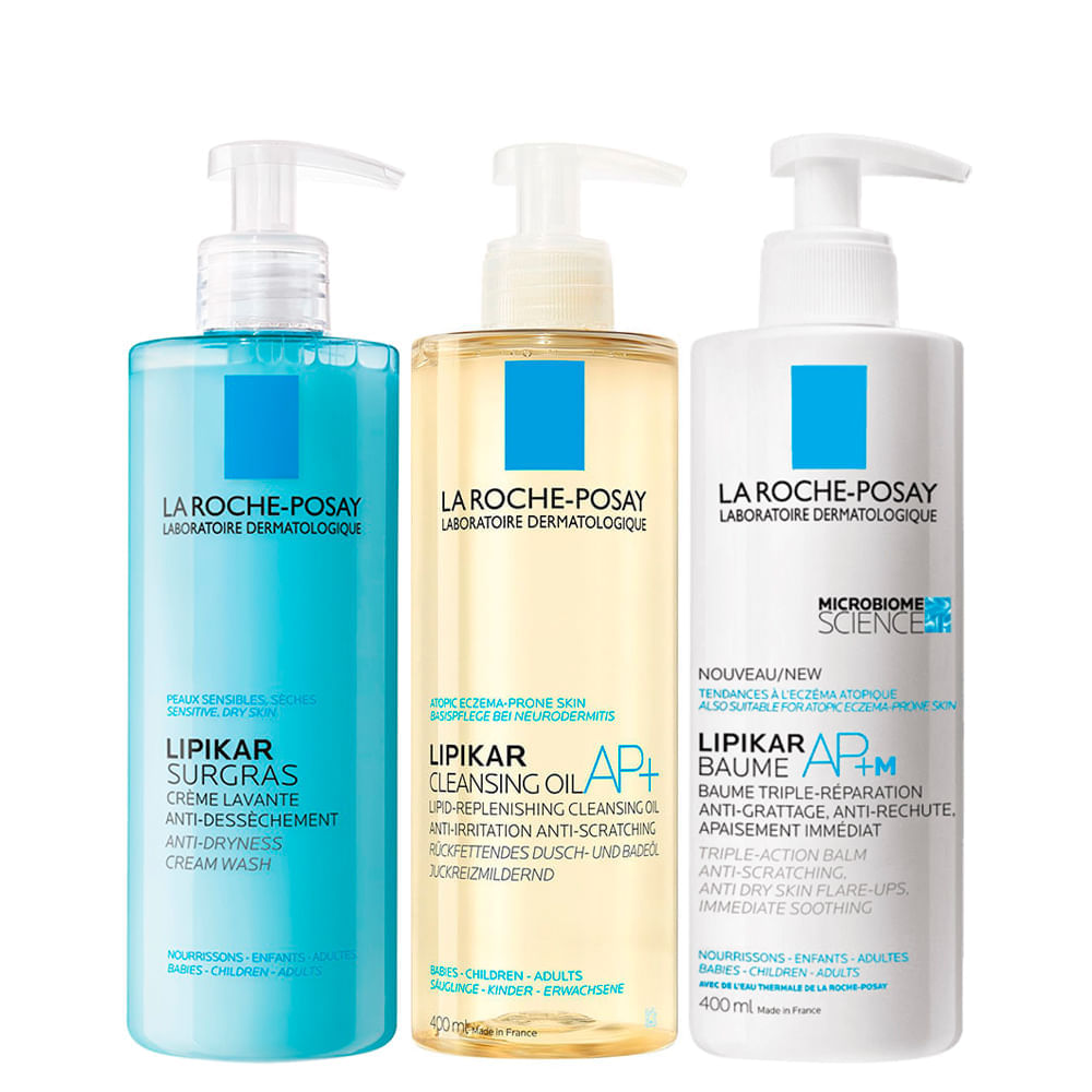 Kit Corporal La Roche-posay Lipikar - Sabonete Líquido Corporal + Óleo De Limpeza 400 Ml + Creme Hidratante 400 Ml