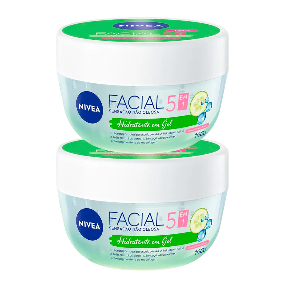 O Kit Creme Hidratante Facial Nivea Em Gel Fresh Pepino E Ácido Hialurônico é um conjunto de cremes hidratantes faciais em gel formulados com extrato de pepino e ácido hialurônico.