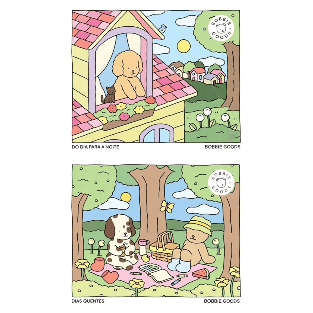 O Kit Livros de Colorir Bobbie Goods Edições Oficiais: Do Dia para a Noite + Dias Quentes chegou pela primeira vez no Brasil trazendo duas edições encantadoras da artista Bobbie Goods. Com ilustrações fofas, páginas destacáveis e conteúdo acolhedor, é perfeito para todas as idades que buscam relaxar, se expressar e se divertir.