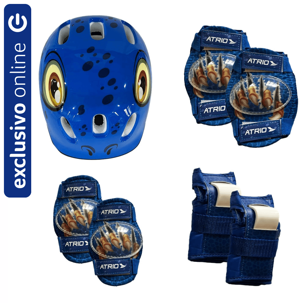 Diversão e segurança garantidas com a linha de esportes da Atrio! O Kit de Proteção Dinossauro conta com 1 par de joelheiras, 1 par de cotoveleiras e 1 par de munhequeira com capacete, para garantir a segurança das crianças na hora de brincar ao ar livre. Com uma estampa super estilosa, moderna e divertida!