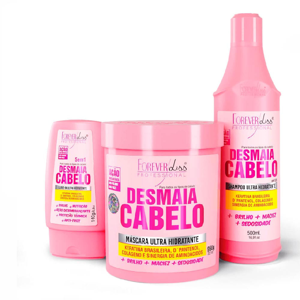 O Kit Desmaia Cabelo Anti Frizz e Volume Profissional Forever Liss une o poder de três produtos da linha para um cabelo poderoso e alinhado. O Shampoo Desmaia Cabelo higieniza os cabelos de forma suave, restaurando fio a fio sem agredir os seus cabelos.