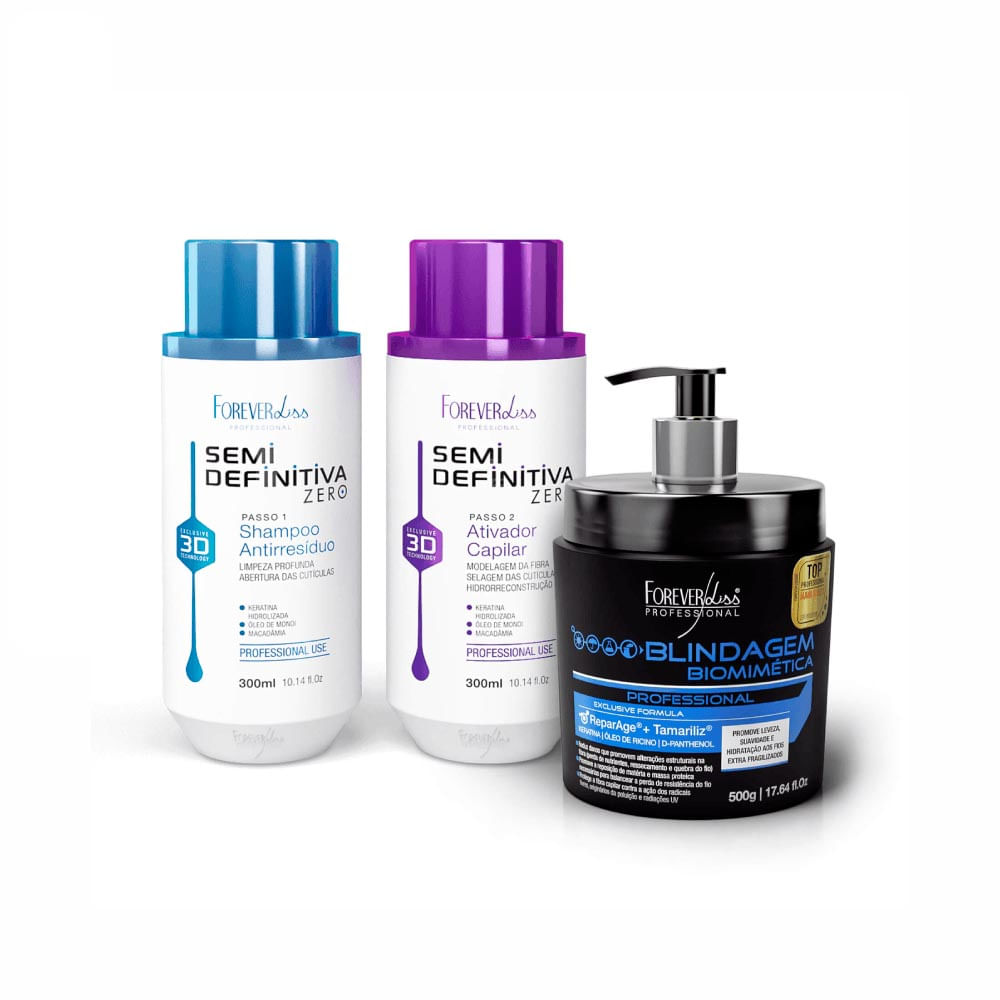 Kit Escova Semi Definitiva Zero 300ml Com Blindagem Capilar Forever Liss