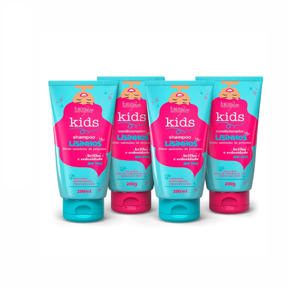Kit Forever Kids Shampoo 200ml + Condicionador 200g Infantis Lisinhos 4 Unidades