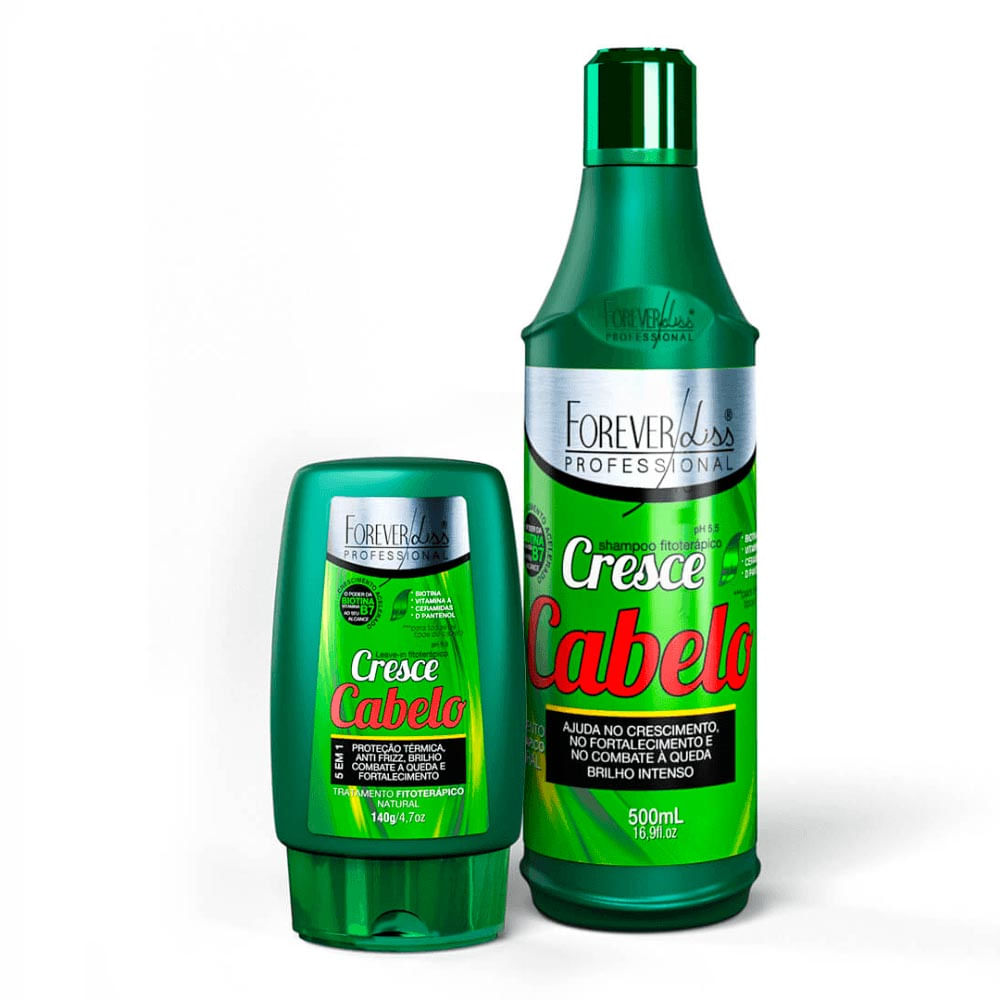 Contém 01 - Shampoo Cresce Cabelo Forever Liss 500ml.01 - Leave-in Cresce Cabelo Forever Liss 140g.