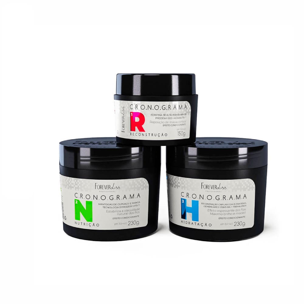 O kit traz ainda a Máscara de Reconstrução Cronograma Capilar Forever Liss, um tratamento completo para recuperar a estrutura capilar fragilizada por danos químicos e térmicos, através da combinação de Queratina, que forma uma camada protetora na fibra capilar, e as tecnologias Keranutri e Prodew 500, um conjunto de aminoácidos que resgatam fios danificados e com elasticidade em excesso, garantindo maior densidade aos fios e aumento de resistência.