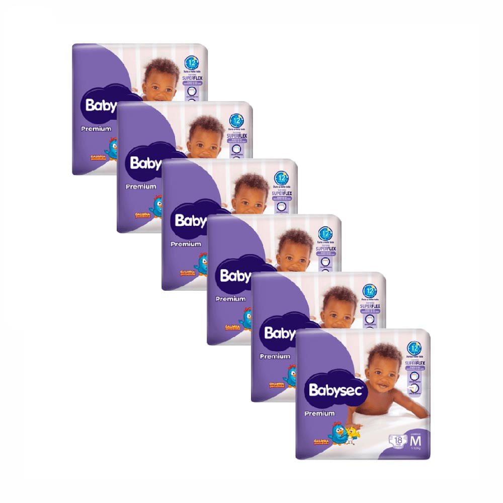 Kit com 6 pacotes Babysec Premium M com 18 unidades cada